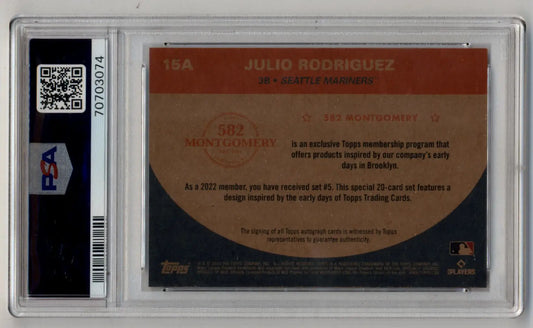 Julio Rodriguz 2022 Topps 582 Montgomery Set 5 Auto PSA 9 Mint