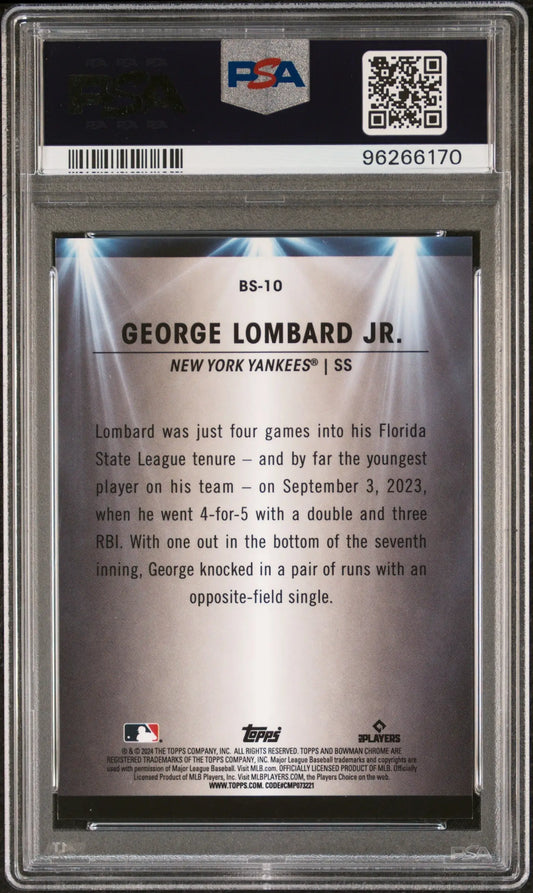 George Lombard Jr. 2024 Bowman Spotlights Orange Refractor #11/25 PSA 9 Mint