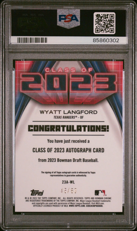 Wyatt Langford 2023 Bowman Draft Class of 2023 Auto 45/50 PSA 9 Mint