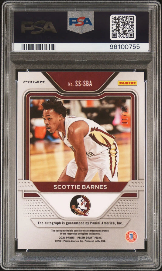Scottie Barnes 2021 Panini Prizm Draft Green Pulsar Auto #1/25 PSA 10 Auto 10