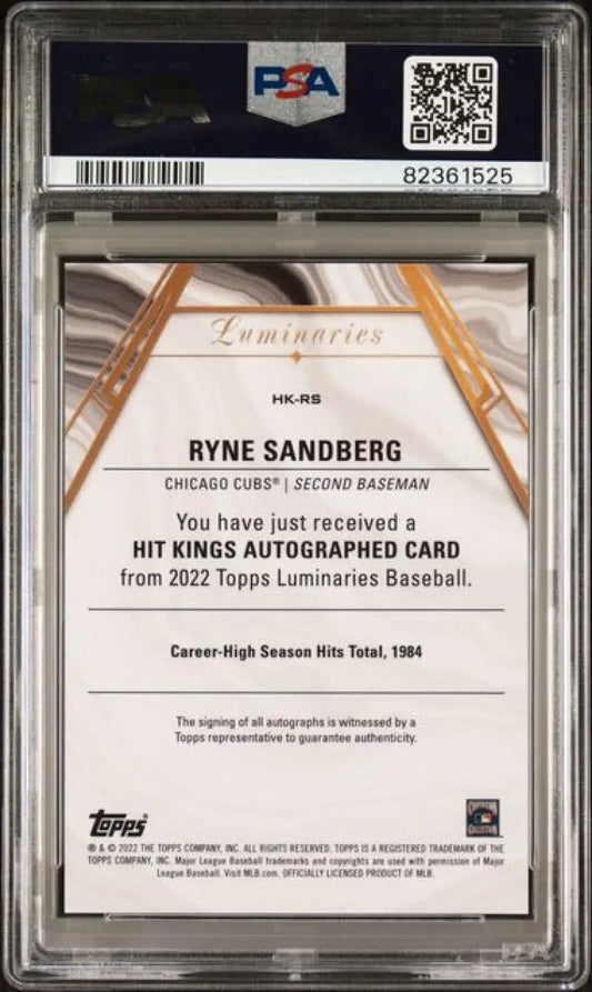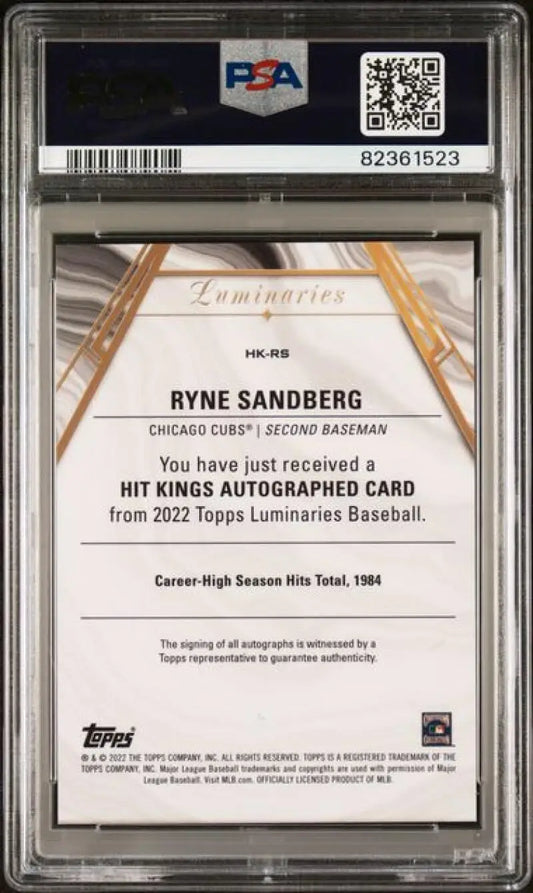 2022 Topps Luminaries #HKRS Ryne Sandberg PSA 10 GEM MINT Auto 8/10 Chicago Cubs Baseball Card