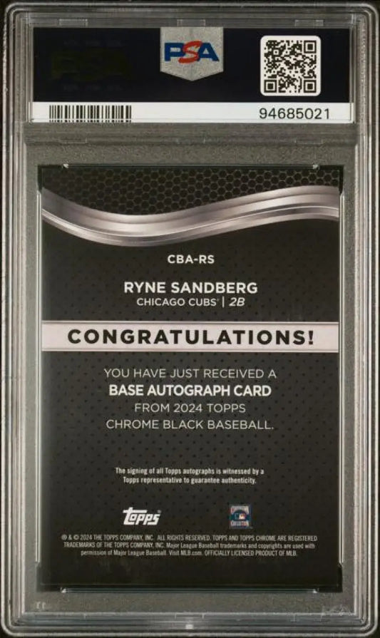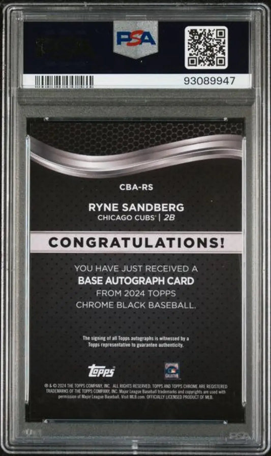 2024 Topps Chrome Black #CBA-RS Ryne Sandberg PSA 10 GEM MINT Auto Chicago Cubs Baseball Card
