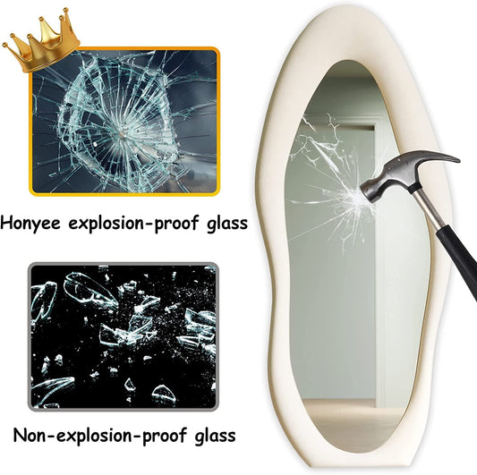 Full Length Mirror, 63 X 24 Wall Mirror, Flannel Wrapped Wooden Frame Full Body Mirror, Irregular Wavy Mirror Hanging or Leaning against Wall for Cloakroom/Bedroom/Living Room, White