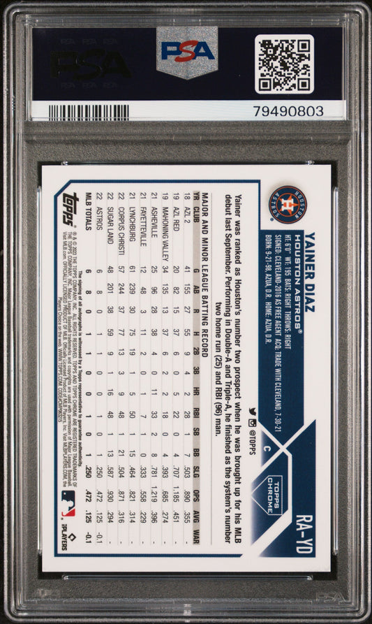 Yainer Diaz 2023 Topps Chrome Blue Raywave Auto PSA 10 Gem Mint