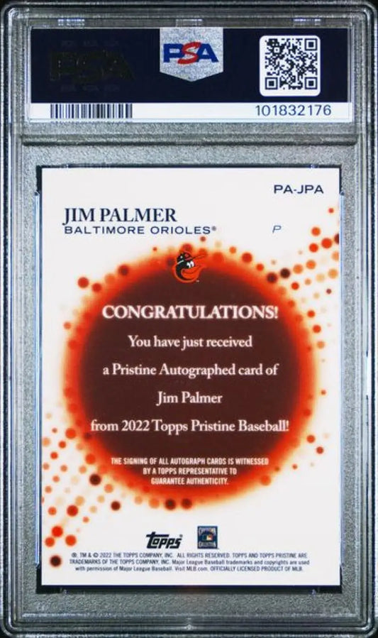 2022 Topps Pristine #PA-JPA Jim Palmer PSA 10 GEM MINT Auto Baltimore Orioles Baseball Card