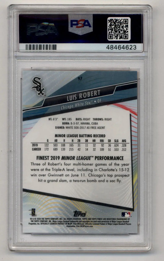 Luis Robert 2020 Finest #97 Orange Refractor 19/25 PSA 10 Gem Mint
