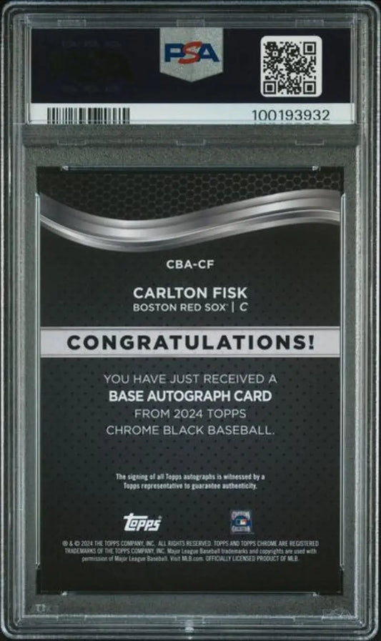 2024 Topps Chrome Black Refractor Green #CBA-CF Carlton Fisk PSA 9 MINT Auto 18/99 Boston Red Sox Baseball Card