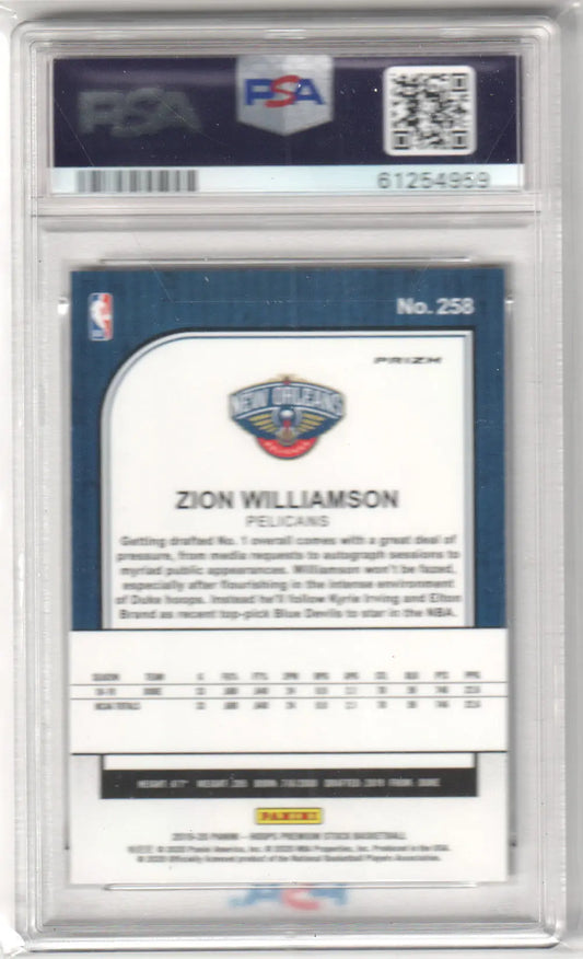 ZION WILLIAMSON 2019-20 Panini Hoops Premium Stock Rookie RC Pulsar PSA 9 MINT