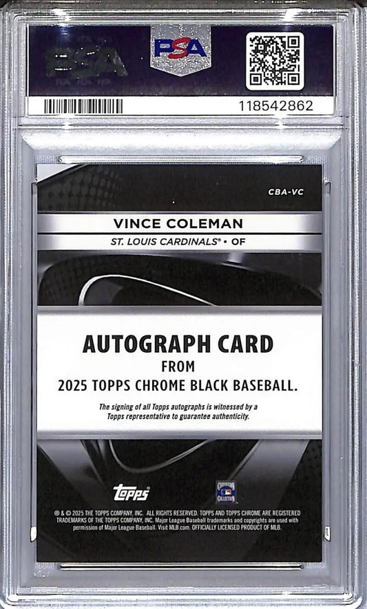 2025 Topps Chrome Black #CBA-VC Vince Coleman PSA 8 NM-MT Auto St. Louis Cardinals