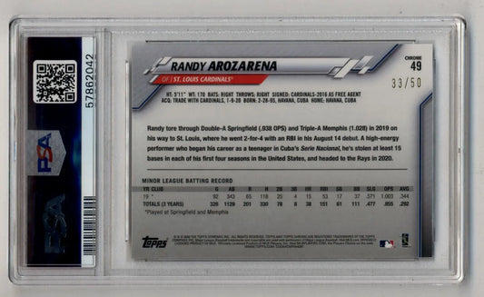 Randy Arozarena 2020 Ben Baller Chrome Gold Refractor #49 33/50 PSA 10 Gem Mint