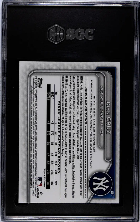 2024 Bowman BCP-77 John Cruz Lunar Glow SGC 10 - New York Yankees