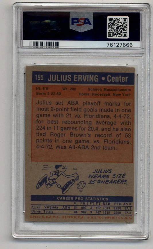 Julius Erving 1972-73 Topps #195 PSA 3 Very Good 7666