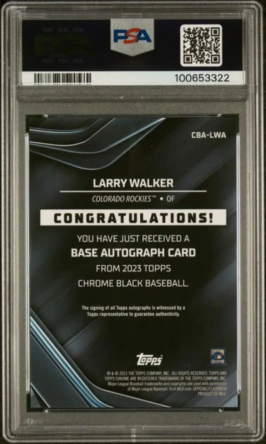 2023 Topps Chrome Black Refractor Orange #CBA-LWA Larry Walker PSA 10 GEM MINT Auto 11/25 Colorado Rockies Baseball Card