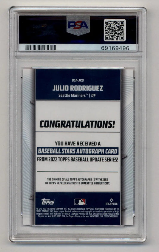 Julio Rodriguez 2022 Topps Update Baseball Stars Red Auto 01/25 PSA 9 Mint