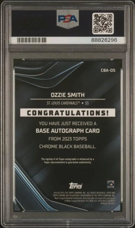 2023 Topps Chrome Black Refractor Green #CBA-OS Ozzie Smith PSA 10 GEM MINT Auto 54/99 St. Louis Cardinals Baseball Card