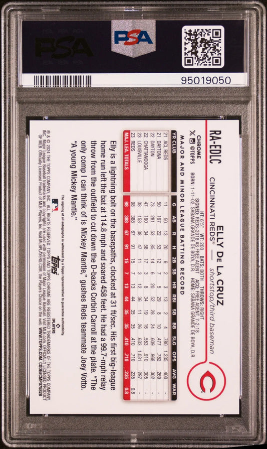 Elly de la Cruz 2024 Topps Chrome Orange Wave Refractor Auto #6/25 PSA 9 Mint