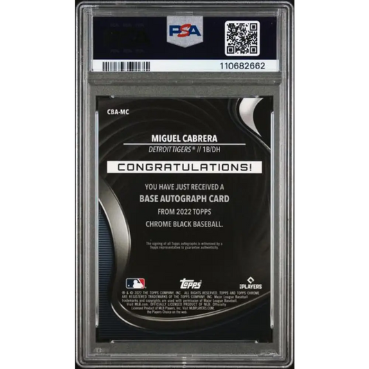 2022 Topps Chrome Black #CBA-MC Miguel Cabrera PSA 9 MINT Auto Detroit Tigers Baseball Card