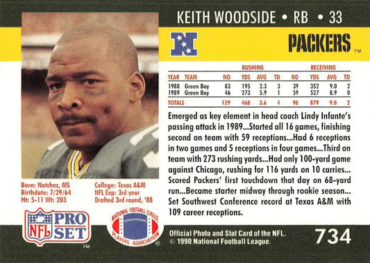 1990 Pro Set #734 Keith Woodside NM-MT Green Bay Packers Football Card