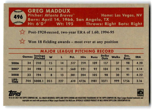 2021 Topps Chrome Platinum Anniversary #496 Greg Maddux NM-MT Atlanta Braves Baseball Card