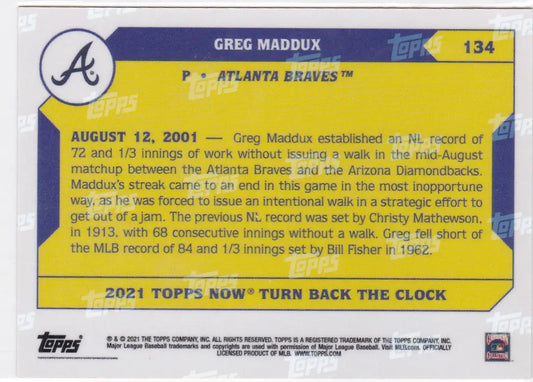 2021 TURN BACK THE CLOCK #134 GREG MADDUX- ATLANTA BRAVES