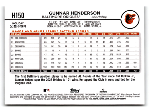 2024 Topps Holiday Holiday Tree #H150 Gunnar Henderson NM-MT Orioles ID:75207