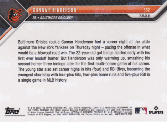 2023 TOPPS NOW #532 GUNNAR HENDERSON- BALTIMORE ORIOLES