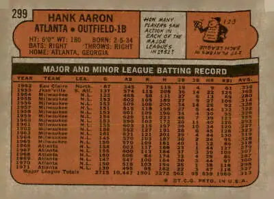 1972 Topps #299 Hank Aaron