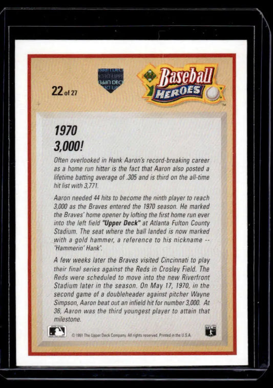 1991 Upper Deck #22 Hank Aaron Atlanta Braves NM-MT Baseball Card