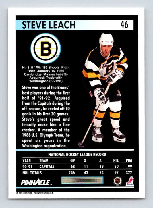 1991-92 Pinnacle #46 Stephen Leach NM-MT Boston Bruins Hockey Card