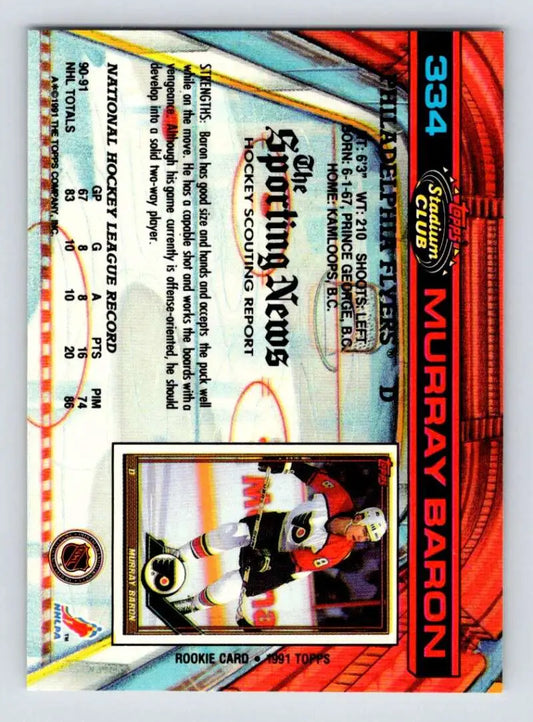 1991-92 Topps Stadium Club #334 Murray Baron NM-MT Philadelphia Flyers Hockey Card
