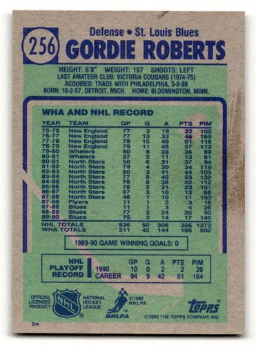 1990 Topps #256 Gordie Roberts St. Louis Blues Hockey Cards NM Near ID:55527
