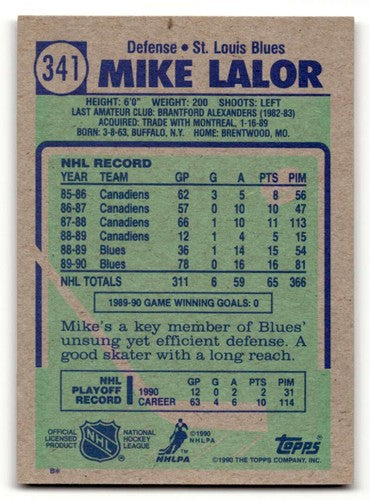 1990 Topps #341 Mike Lalor St. Louis Blues Hockey Cards NM Near Mint ID:55525