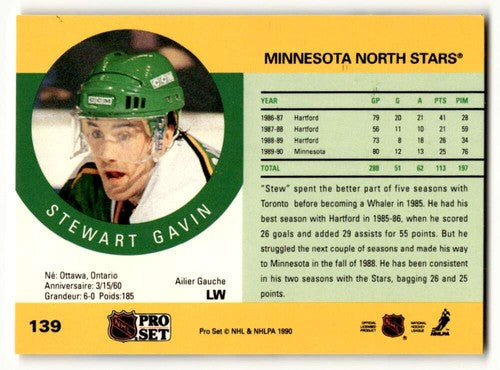 1990 Pro Set #139 Stewart Gavin Minnesota North Stars Hockey Cards E ID:60543