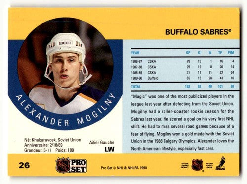 1990 Pro Set #26 Alexander Mogilny Buffalo Sabres Hockey Cards EX/NM ID:60549