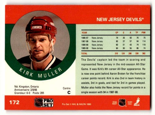 1990 Pro Set #172 Kirk Muller New Jersey Devils Hockey Cards EX/NM ID:60541