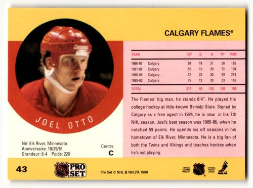 1990 Pro Set #43 Joel Otto Calgary Flames Hockey Cards EX/NM ID:60542