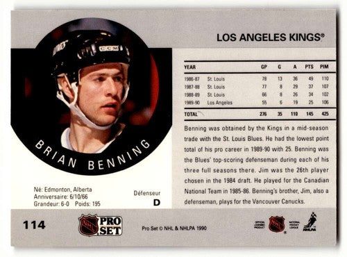 1990 Pro Set #114 Brian Benning Los Angeles Kings Hockey Cards EX/NM ID:60538