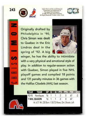 1993-94 Upper Deck Hockey Chris Simon #243 RC