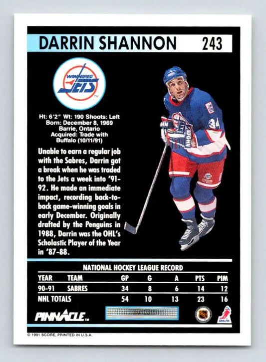 1991-92 Pinnacle #243 Darrin Shannon NM-MT Winnipeg Jets Hockey Card