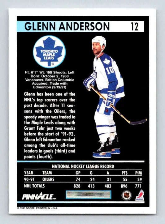 1991-92 Pinnacle #12 Glenn Anderson NM-MT Toronto Maple Leafs Hockey Card