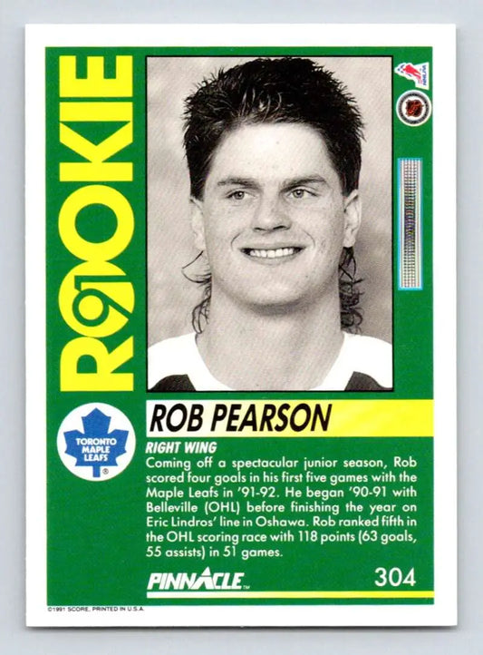 1991-92 Pinnacle #304 Rob Pearson NM-MT RC Rookie Toronto Maple Leafs Hockey Card