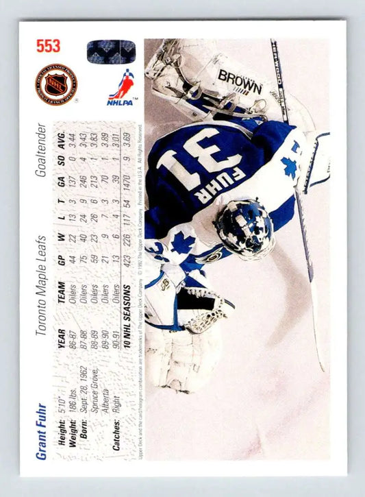 1991-92 Upper Deck #553 Grant Fuhr NM-MT Toronto Maple Leafs Hockey Card