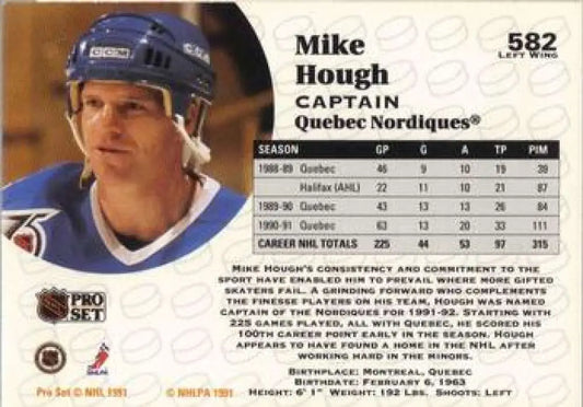 1991-92 Pro Set #582 Mike Hough NM-MT Quebec Nordiques Hockey Card