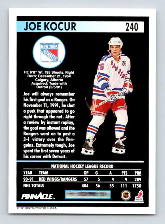 1991-92 Pinnacle #240 Joey Kocur NM-MT New York Rangers Hockey Card