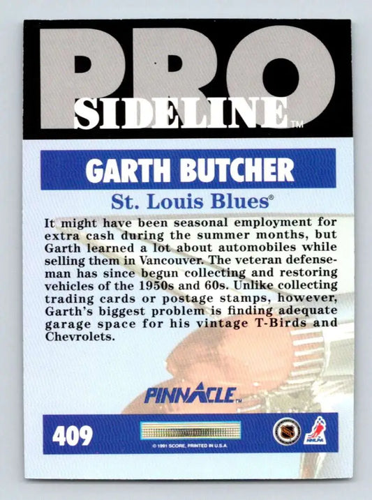 1991-92 Pinnacle #409 Garth Butcher SL NM-MT St. Louis Blues Hockey Card