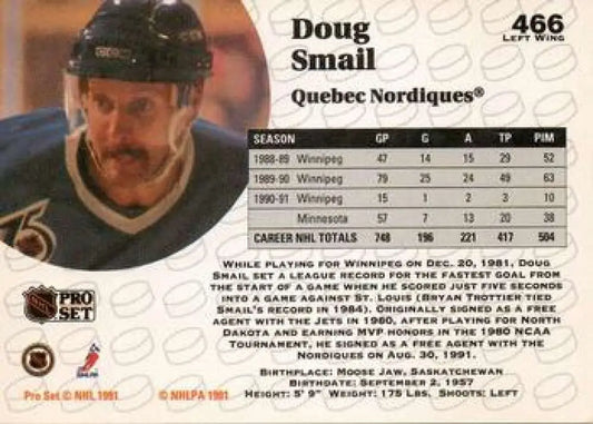 1991-92 Pro Set #466 Doug Smail NM-MT Quebec Nordiques Hockey Card
