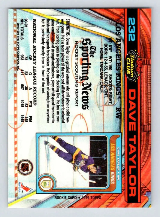 1991-92 Topps Stadium Club #232 Dave Taylor NM-MT Los Angeles Kings Hockey Card