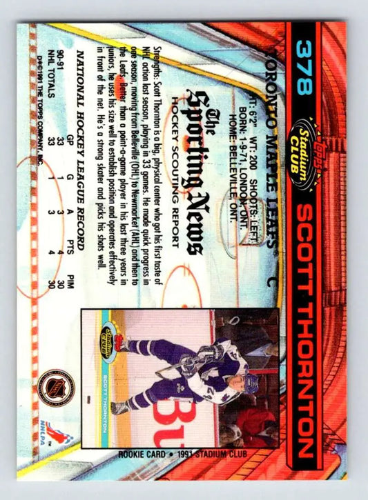 1991-92 Topps Stadium Club #378 Scott Thornton NM-MT Toronto Maple Leafs Hockey Card