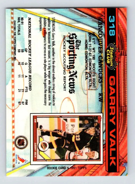 1991-92 Topps Stadium Club #318 Garry Valk NM-MT Vancouver Canucks Hockey Card