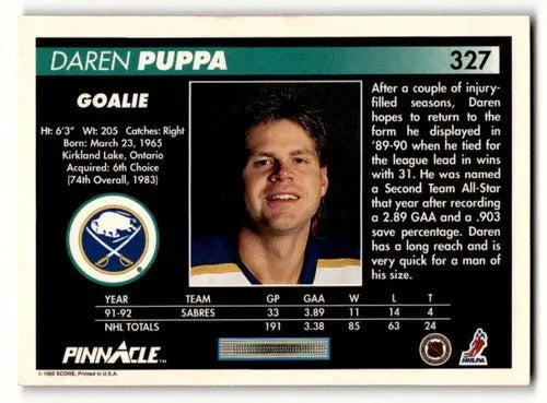 1992 Pinnacle #327 Daren Puppa Sabres Hockey Cards EX/NM ID:57747